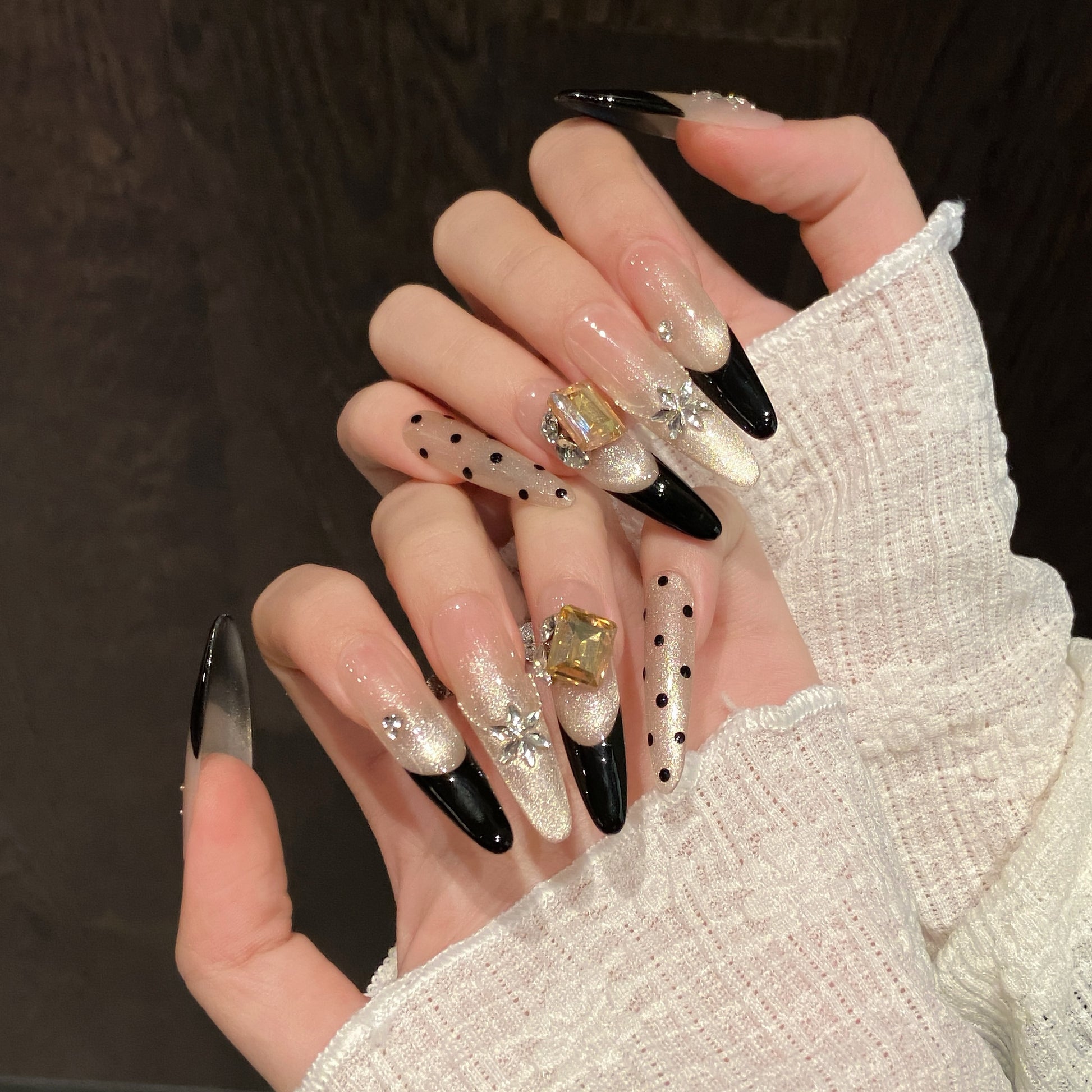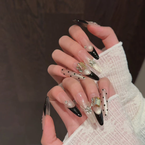 Beige - Black Gradient Gem Star Elegant Press - on Nails