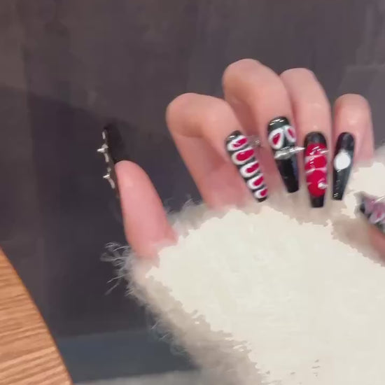 Black - Red Snake Skin Rivet Press - on Nails