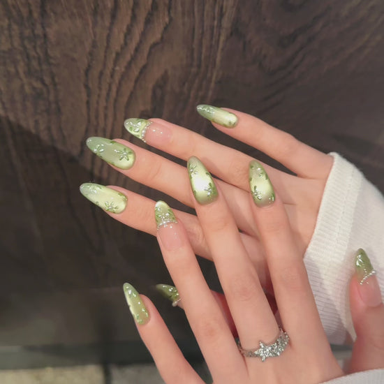 Green - Pink Floral Pearl Press - on Nails