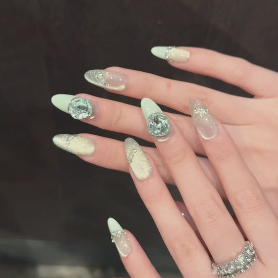 Mint & Silver Glitter Gemstone Glam Press - on Nails