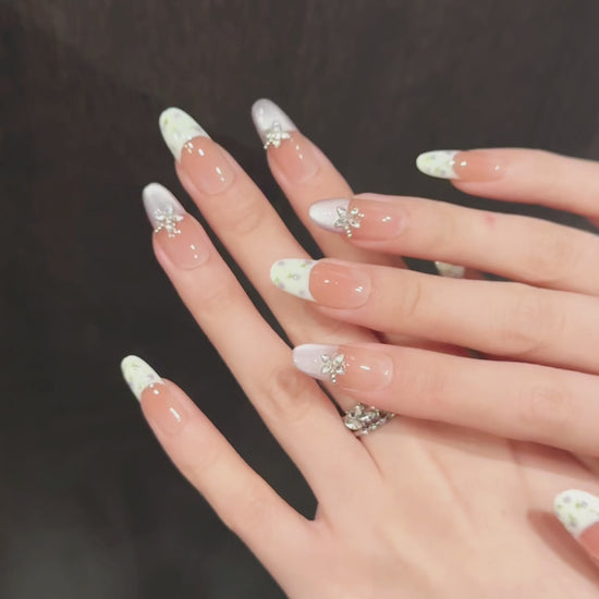 Orange - Pink Gradient Floral Butterfly Glam Press - on Nails