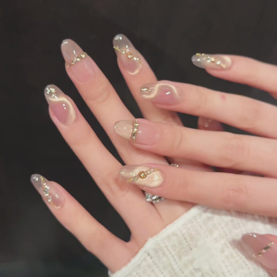 Pink Gold Chain Gemstone Glam Press - on Nails