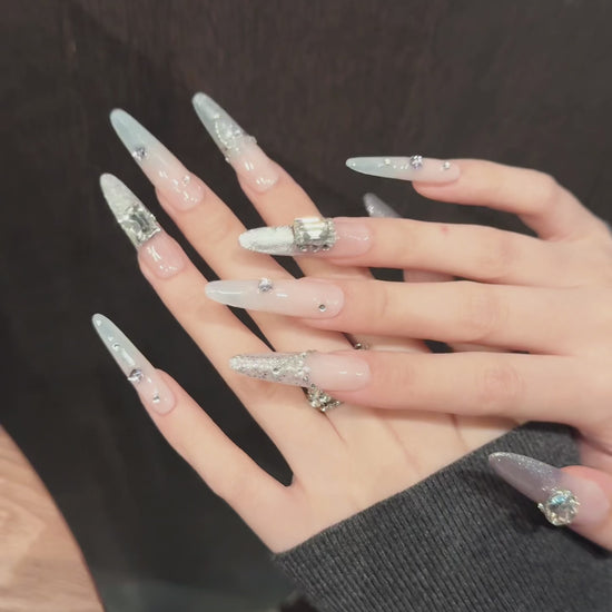 Pink Silver Glitter Gemstone Glam Press - on Nails