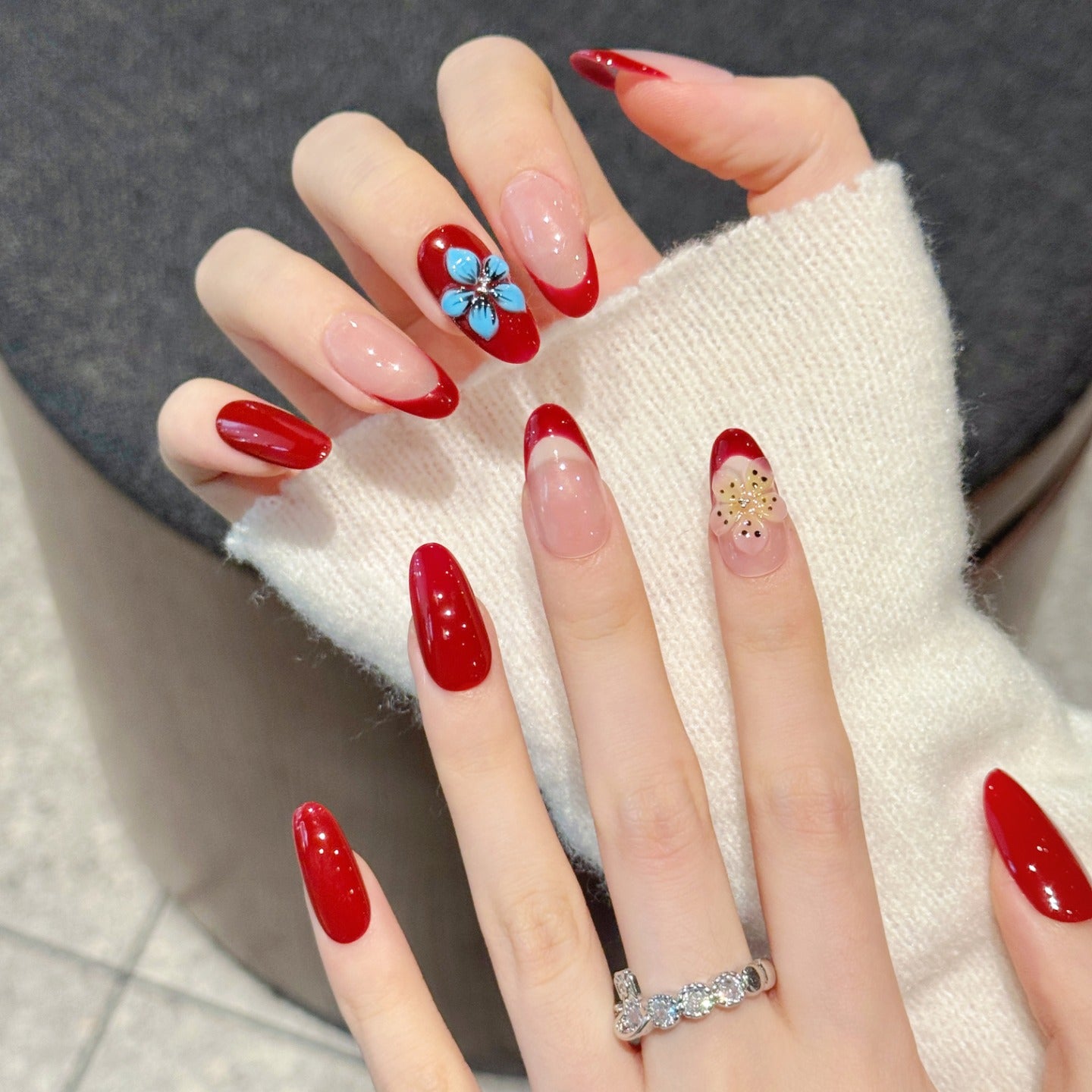 Red - Pink Floral Elegant Press - on Nails